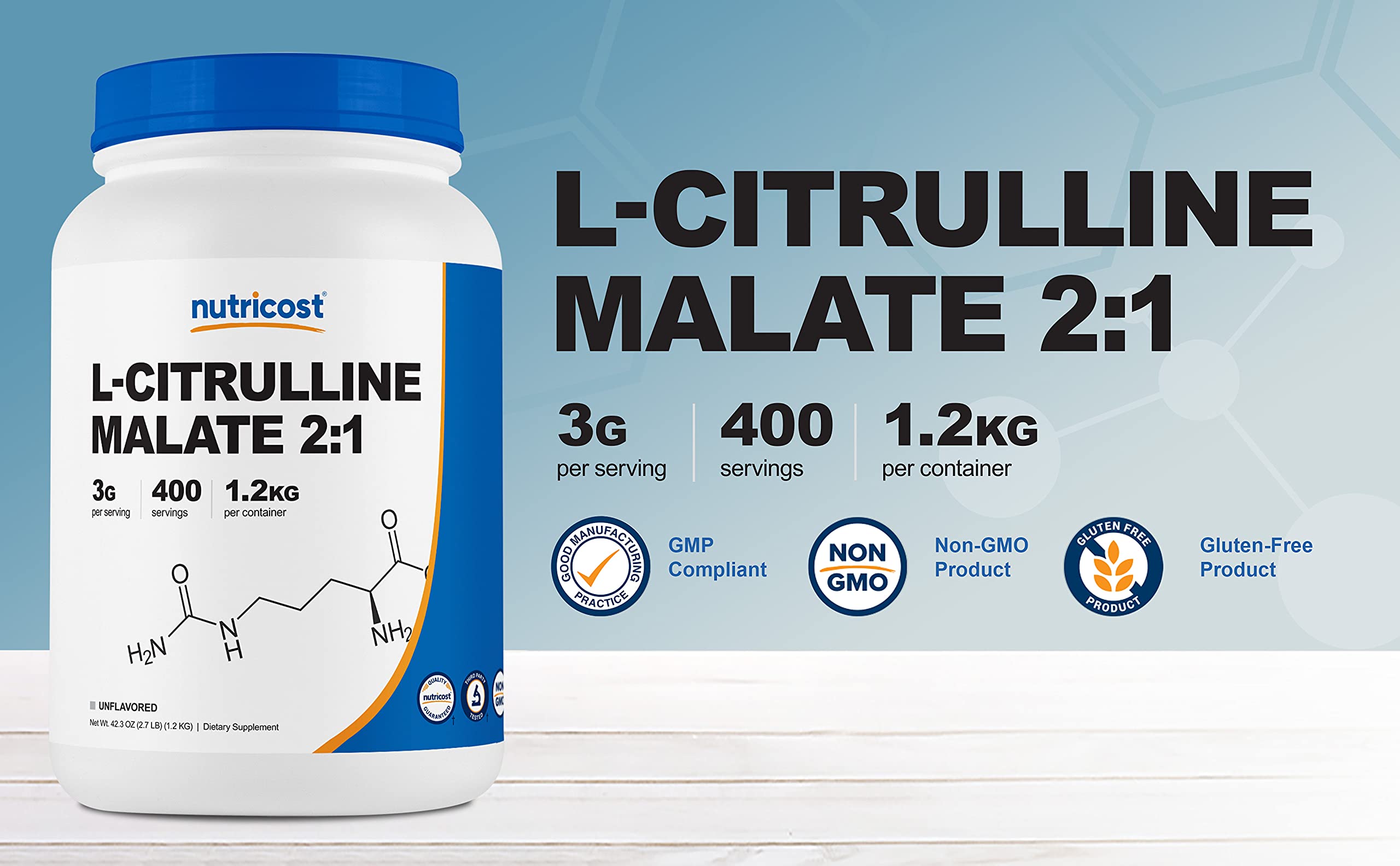 - 1.2 KG of L-Citrulline Malate Powder Per Bottle